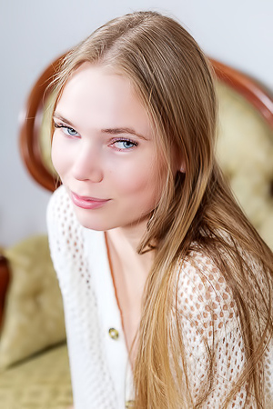 Slim blonde beauty Jati in the studio